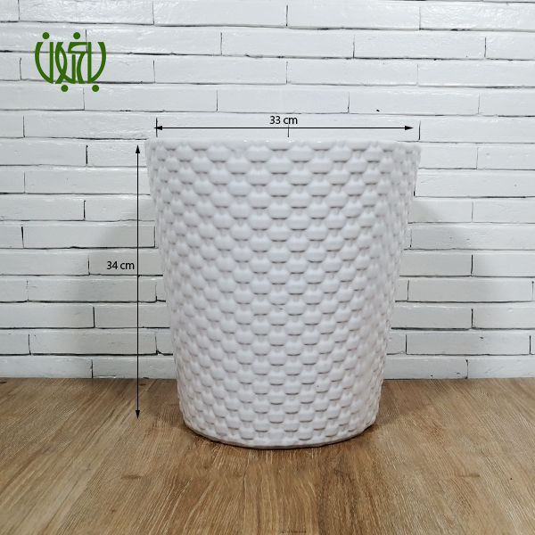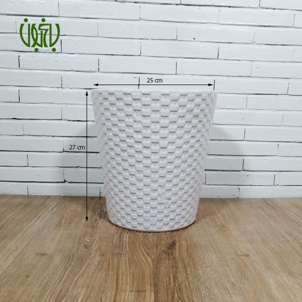 گلدان سفالی فوق مدل 07-50 است. این مدل گلدان استوانه ای شکل با طراحی زیبای خود یکی از گلدانهای محبوب به شمار می رود این گلدان دارای 3 سایز معادل با سطل 12 و سطل 10 است و تنها رنگ موجود آن سفید است.